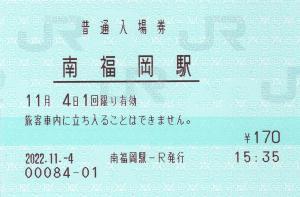 南福岡駅改札付近のみどりの窓口発行の入場券です。