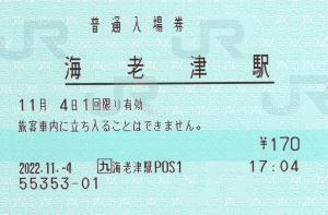 海老津駅改札付近のみどりの窓口発行の入場券です。