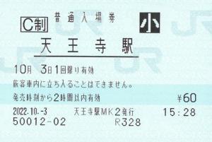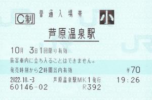 出札窓口で発売の硬券入場券です。