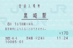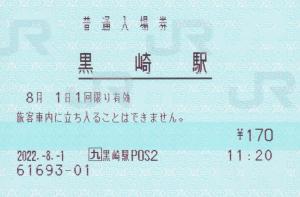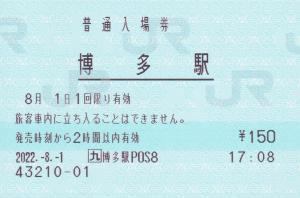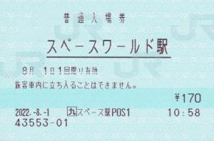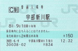 宇部新川駅改札付近、みどりの券売機プラスにて発行の入場券です。