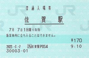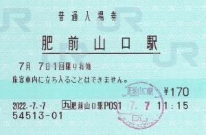 肥前山口駅みどりの窓口にて購入の入場券です。