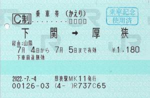 厚狭駅乗車記念印押印済。