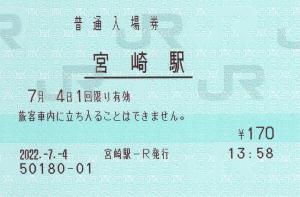 宮崎駅みどりの窓口、向かって右側にて発行の入場券です。