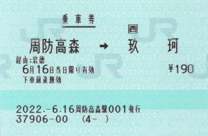 由宇駅改札付近のみどりの窓口発行の乗車券です。