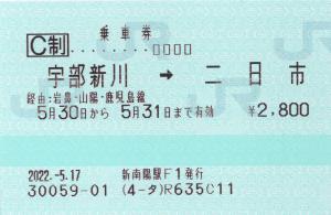 新南陽駅改札付近のみどりの窓口発行の乗車券です。