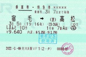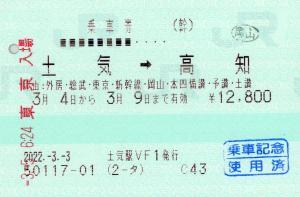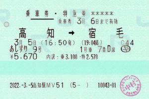 スタンプは無効印代わりの土佐くろしお鉄道車内検札印(宿毛駅は17:00以降無人となるため)