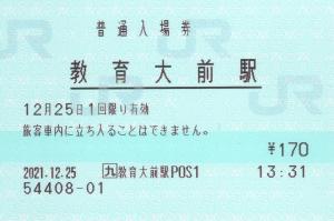 教育大前駅改札付近のみどりの窓口発行の入場券です。