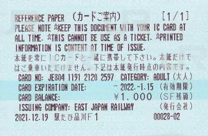 窓口内ハイカウンターに3台並んだMR52のうち、右端の端末で発行したWelcome Suicaのご案内券です