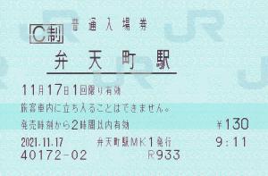 矢賀駅改札付近のみどりの窓口発行の入場券です。