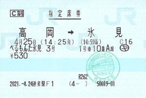 越中八尾駅のみどりの窓口で発行したものです
