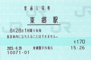 東郷駅改札付近のみどりの窓口にて発行の入場券です。