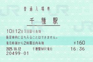 千種駅の地上のきっぷうりば発行のマルス券です。