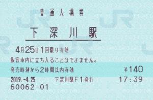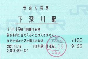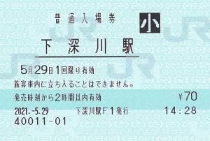 下深川駅改札付近のみどりの窓口発行の入場券です。