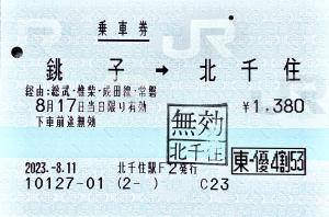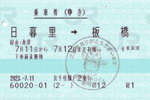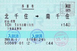 北千住駅発行の乗車券です。