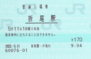 折尾駅窓口向かって左側の端末にて発行の入場券です。