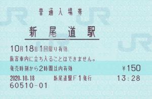 新尾道駅改札付近みどりの窓口発行の入場券です。