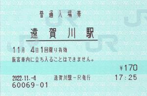 遠賀川駅改札付近のみどりの窓口にて発行の入場券です。