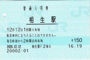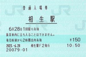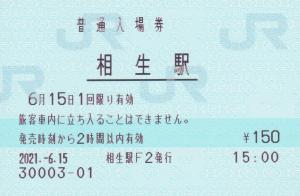 相生駅改札内、新幹線乗り換え改札付近のみどりの窓口にて発行の入場券です。