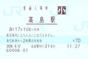 みどりの券売機。高島駅MK31発行。