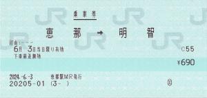 JR全線きっぷうりば発行の、明知鉄道の社線単独乗車券です。
