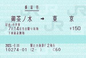 秋葉原駅発行の乗車券です。