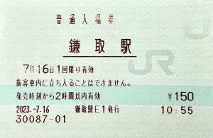 浜金谷駅発行の入場券です。