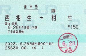 西相生駅改札付近の窓口にて発行の乗車券です。