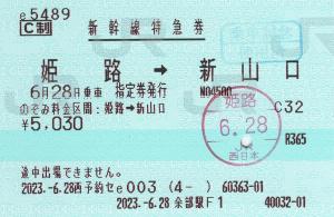 余部駅F1(MR52) 2023/06/28 | 余部駅改札付近のみどりの窓口にて発行の新幹線特急券です。