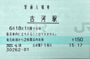 古河駅F1(MR52) 2023/06/18 | | Haiki_mars さんの投稿 | 古河駅発行の入場券です。