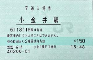 小金井駅F1(MR52) 2023/06/18 | | Haiki_mars さんの投稿 | 小金井駅発行の入場券です。