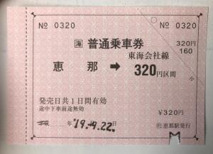 発行箇所は○社恵那駅です。 |