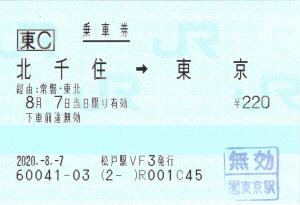| 一般画面からの投稿(4307) 松戸駅(千葉県/JR東日本) 松戸駅VF3(MV50) ・ 2020/08/07 片道 東C 85mmロール 無効印(東京) |