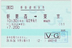 | 一般画面からの投稿(3594) 矢野口駅(東京都/JR東日本) 矢野口駅A1(MEX) ・ 2016/10/26 新幹線 特急券 席無 東C V・G 85mmロール 無効印(東京) |