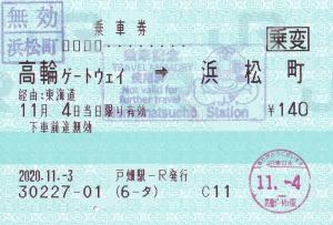 | 一般画面からの投稿(5034) 戸畑駅(福岡県/JR九州) 戸畑駅-R(MR52) ・ 2020/11/03 片道 乗変 85mmロール 入鋏印(高輪ゲートウェイ) 無効印(浜松町) 乗車記念印(浜松町) |