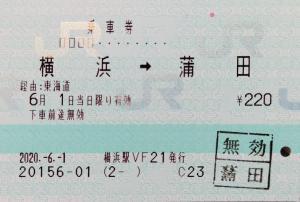 | 一般画面からの投稿(3463) 横浜駅(神奈川県/JR東日本) 横浜駅VF21(MV50) ・ 2020/06/01 片道 85mmロール 無効印(蒲田) |