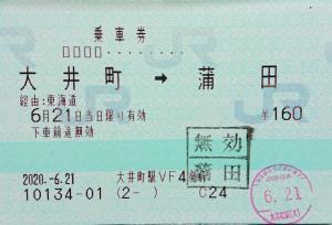 | 一般画面からの投稿(3883) 大井町駅(東京都/JR東日本) 大井町駅VF4(MV50) ・ 2020/06/21 片道 85mmロール 入鋏印(大井町) 無効印(蒲田) |