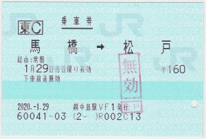 | 一般画面からの投稿(2505) 越中島駅(東京都/JR東日本) 越中島駅VF1(MV50) ・ 2020/01/29 片道 東C 85mmロール 無効印(松戸) |