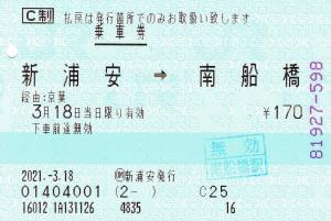 | 一般画面からの投稿(5916) 日本旅行リテイリング新浦安支店(千葉県/日本旅行リテイリング) (OM)新浦安(感熱旅行業端末) ・ 2021/03/18 片道 C制 85mmプリカット 無効印(南船橋) |