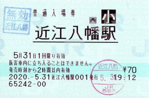 近江八幡駅001(JR感熱POS) ・ 2020/05/31