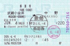 | 一般画面からの投稿(3527) 近畿日本ツーリストビックカメラ立川営業所(東京都/近畿日本ツーリスト) (KC)ビツク立川(感熱旅行業端末) ・ 2020/06/04 片道 英語表記 85mmプリカット 入鋏印(武蔵小金井) 無効印(西葛西) |