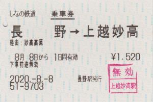 | 一般画面からの投稿(4326) 長野駅(長野県/しなの鉄道) 発行端末の情報なし ・ 発行日入力なし 無効印(上越妙高) |