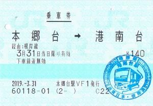 乗車記念印(港南台)