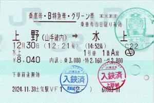 | 一般画面からの投稿(9471) 高崎駅(群馬県/JR東日本) 高崎駅VF16(MV50) ・ 2023/10/15 片道 85mmロール 入鋏印(高崎) 乗車記念印(水上) |