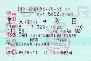 | きっぷアルバム(---/公開) 土気駅(千葉県/JR東日本) 土気駅VF1(MV50) ・ 2024/04/19 片道 新幹線 特急券 グリーン 列車1(こまち) 85mmロール 乗車記念印(秋田) |