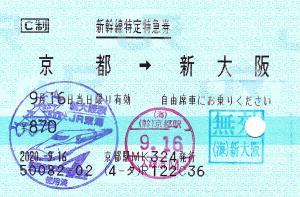 | 一般画面からの投稿(4650) 京都駅(京都府/JR西日本) 京都駅MK324(MV50) ・ 2020/09/16 新幹線 特定特急券 C制 85mmロール 入鋏印(京都) 無効印(新大阪) 乗車記念印(新大阪) |