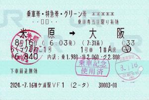 | きっぷアルバム(---/公開) 袖ケ浦駅(千葉県/JR東日本) 袖ケ浦駅VF1(MV50) ・ 2024/07/16 片道 特急券 グリーン 列車1(らくラクびわこ) 85mmロール 入鋏印(米原) 乗車記念印(大阪) |
