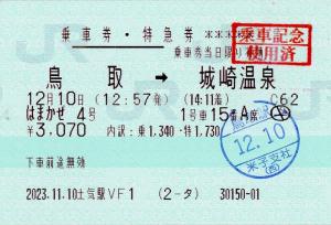 | きっぷアルバム(---/公開) 土気駅(千葉県/JR東日本) 土気駅VF1(MV50) ・ 2023/11/10 片道 特急券 列車1(はまかぜ) 85mmロール 入鋏印(鳥取) 乗車記念印(城崎温泉) |