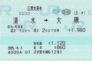 | 一般画面からの投稿(10624) 沼津駅(静岡県/JR東海) 沼津駅改MR612(MR52) ・ 2025/04/01 区間変更(片道) 85mmロール 下車印(函南,熱海) |