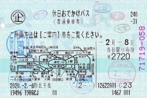 | 一般画面からの投稿(3289) JTB北千住マルイ店(東京都/JTB) (交)北千住(感熱旅行業端末) ・ 2020/02/06 本券(企240-31:休日おでかけパス) 85mmプリカット 入鋏印(北千住) 下車印(大宮) |