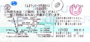 | 一般画面からの投稿(4108) 深谷駅(埼玉県/JR東日本) 深谷駅VF2(MV50) ・ 2018/12/08 本券(企241-20:ぐんまワンデー世界遺産パス) 120mmロール 入鋏印(深谷) 下車印(伊勢崎) |